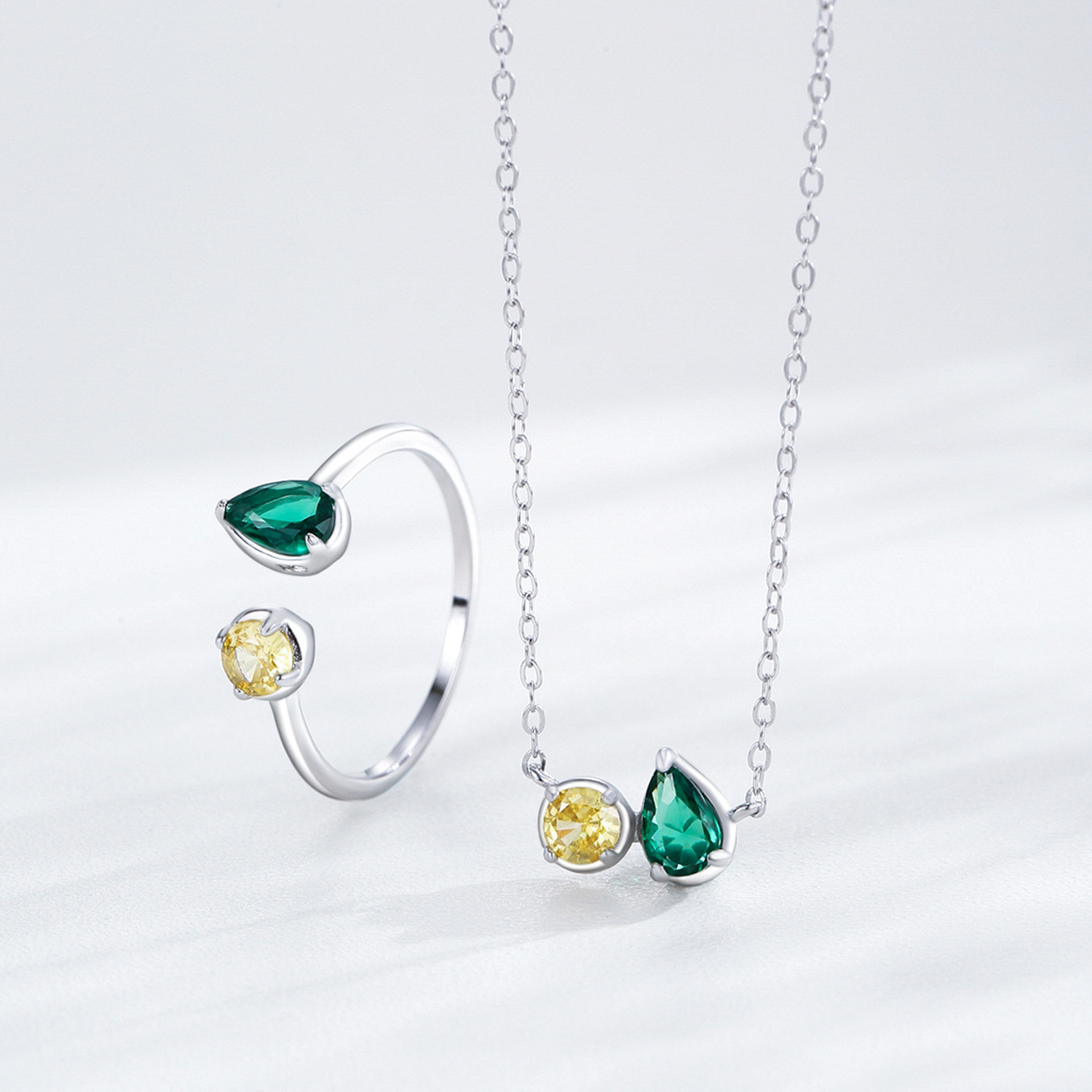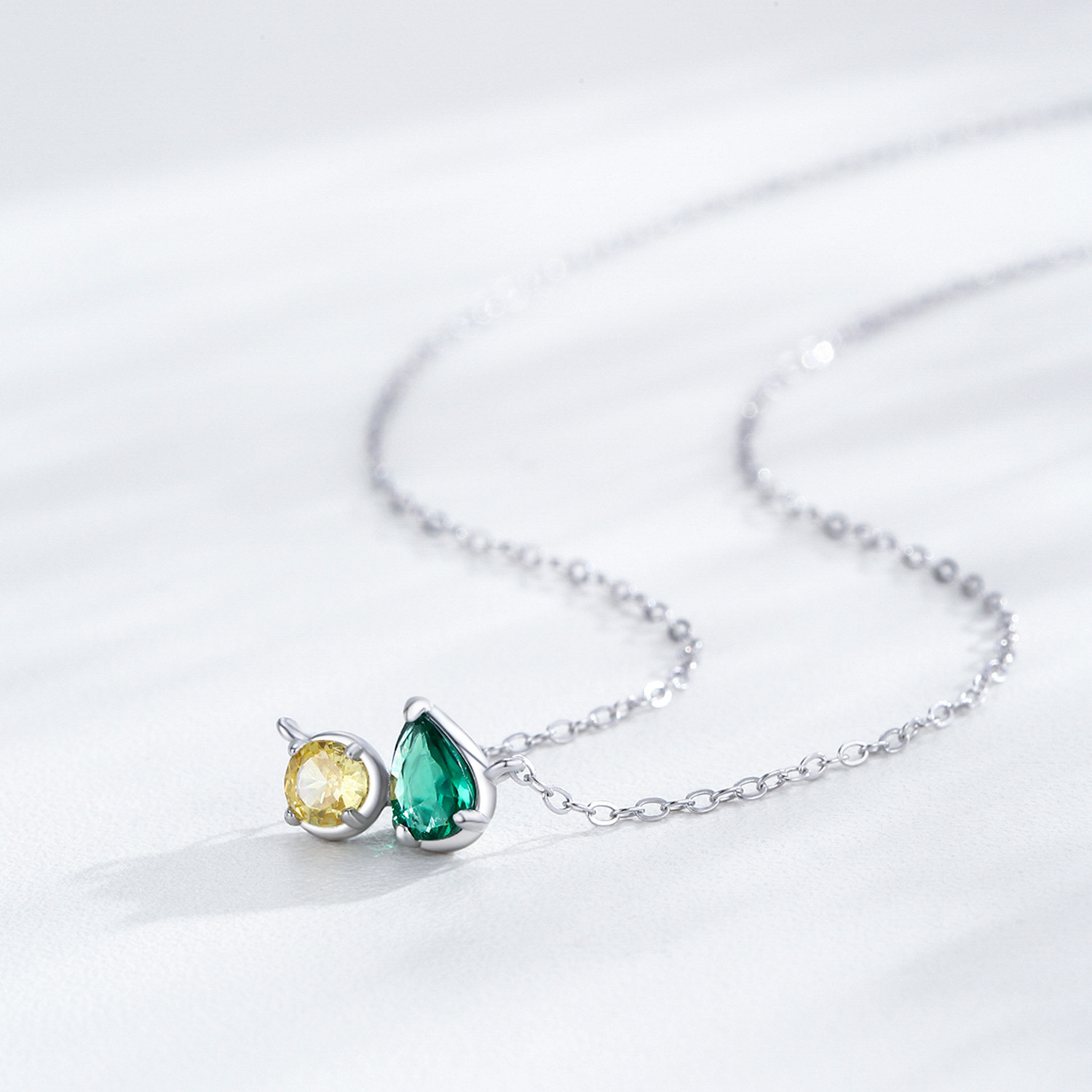 Hot Sale Simple Geometric Zircon Necklace 925 Sterling Silver Yellow Green Emerald Pendant Necklace Factory Wholesale Jewelry